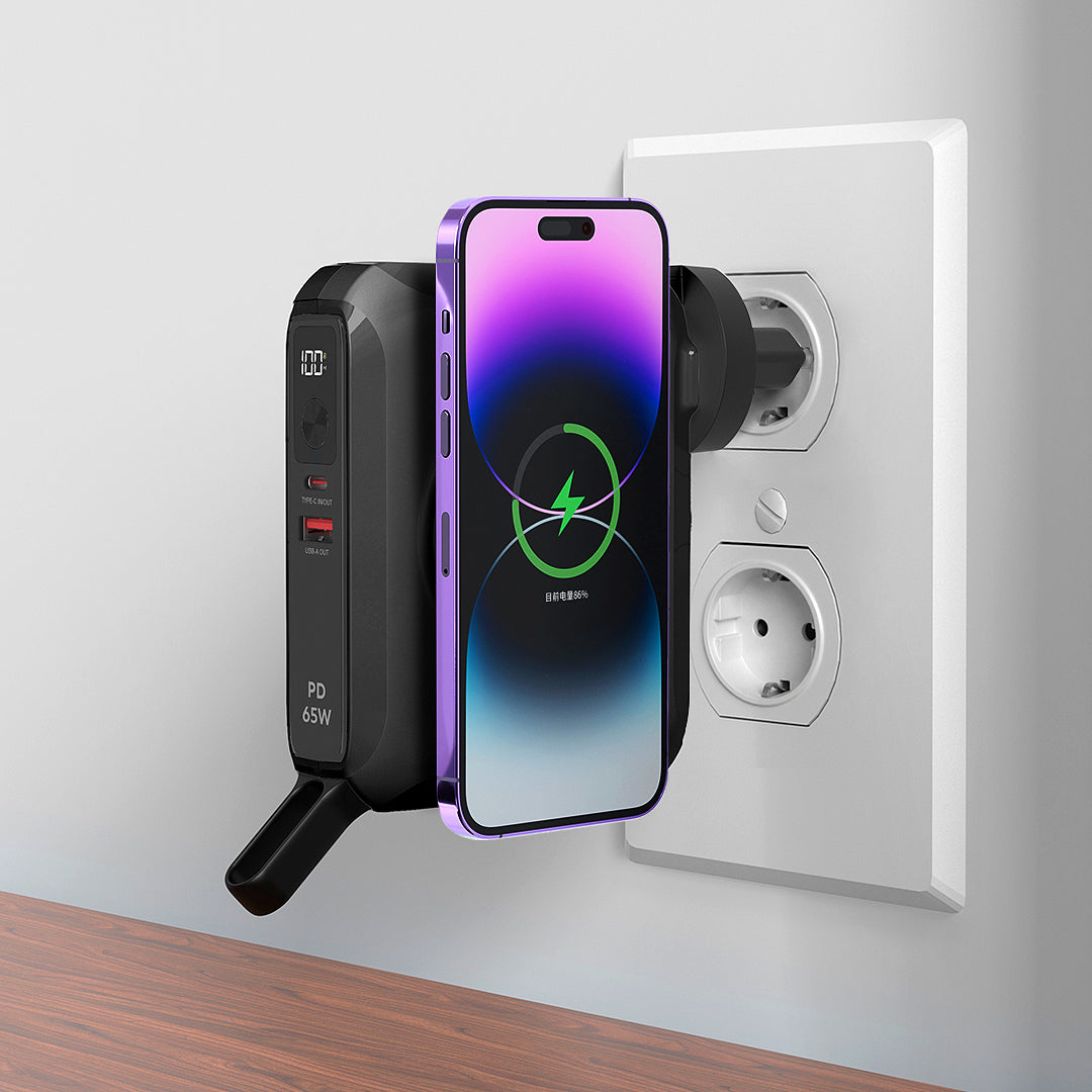 PRO univerzalni putni punjač i power bank (PD 65W) predstavlja sveobuhvatno rešenje za punjenje uređaja, idealno za putovanja, poslovne korisnike i tehnološke entuzijaste. Zahvaljujući kompaktnom dizajnu sa integrisanim Type-C kablom, snažnom PD 65W brzom punjenju i ugrađenom power bank-u, omogućava istovremeno punjenje laptopa, telefona i drugih pametnih uređaja.