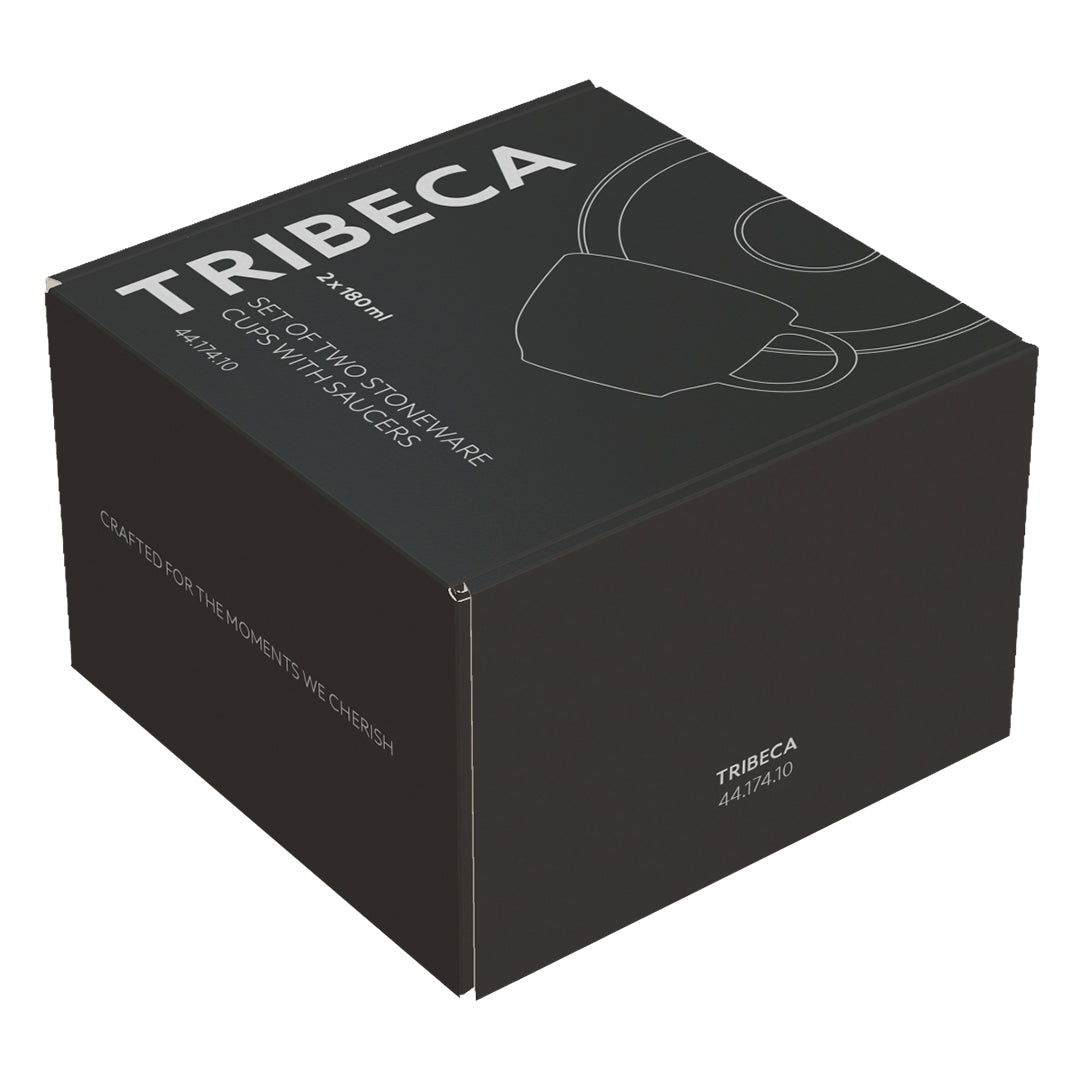 TRIBECA je set od dve keramičke šoljice sa tacnama, svaki sa kapacitetom od 180 ml, namenjen ljubiteljima dužih kafa. Kao potpuna novina u kolekciji keramičkih šolja za promociju, predstavlja premium izbor koji spaja funkcionalnost i vizuelnu inovaciju.